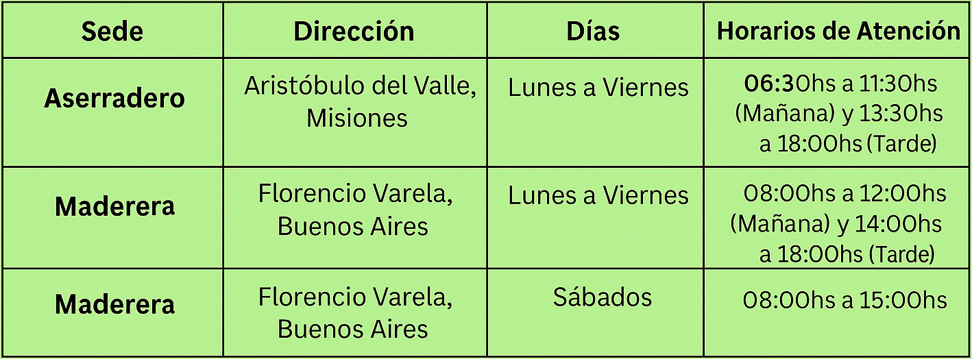Lunes a Viernes de 06:30hs a 11:30hs / 13:30hs a 18:00hs